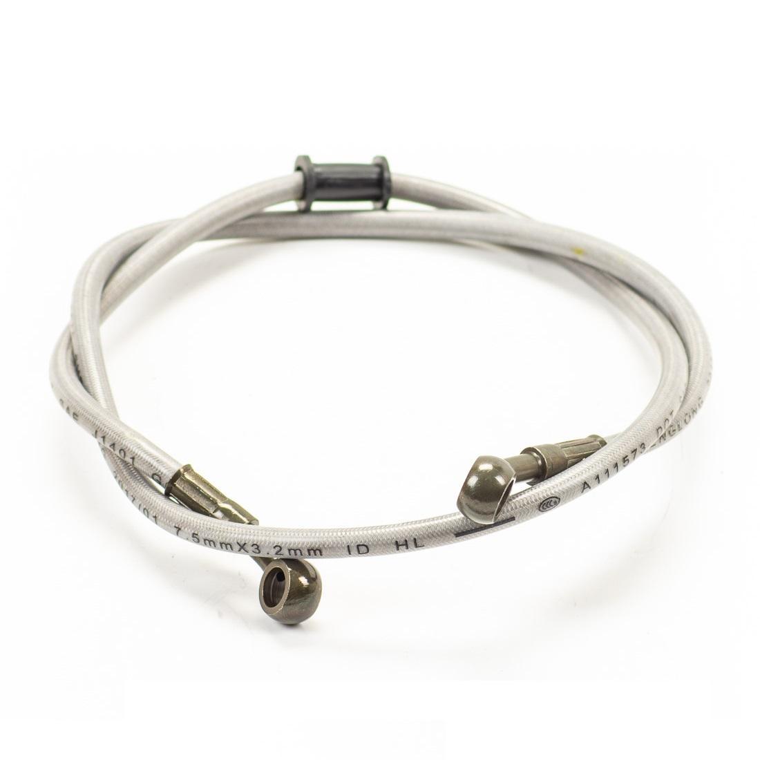 Длина тормозного армированного шланга составляет 1000мм (100см) по центрам отверстий под банджо болт.